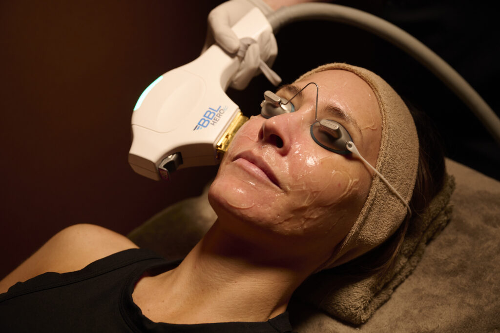 BBL® HEROic™ can be used anywhere on the body – the tool uses proprietary technology designed to deliver a smooth and consistent motion as it’s swept across the skin, and comes with a suite of filters relating to different wavelengths of light, enabling us to customise the treatment to each patient.
